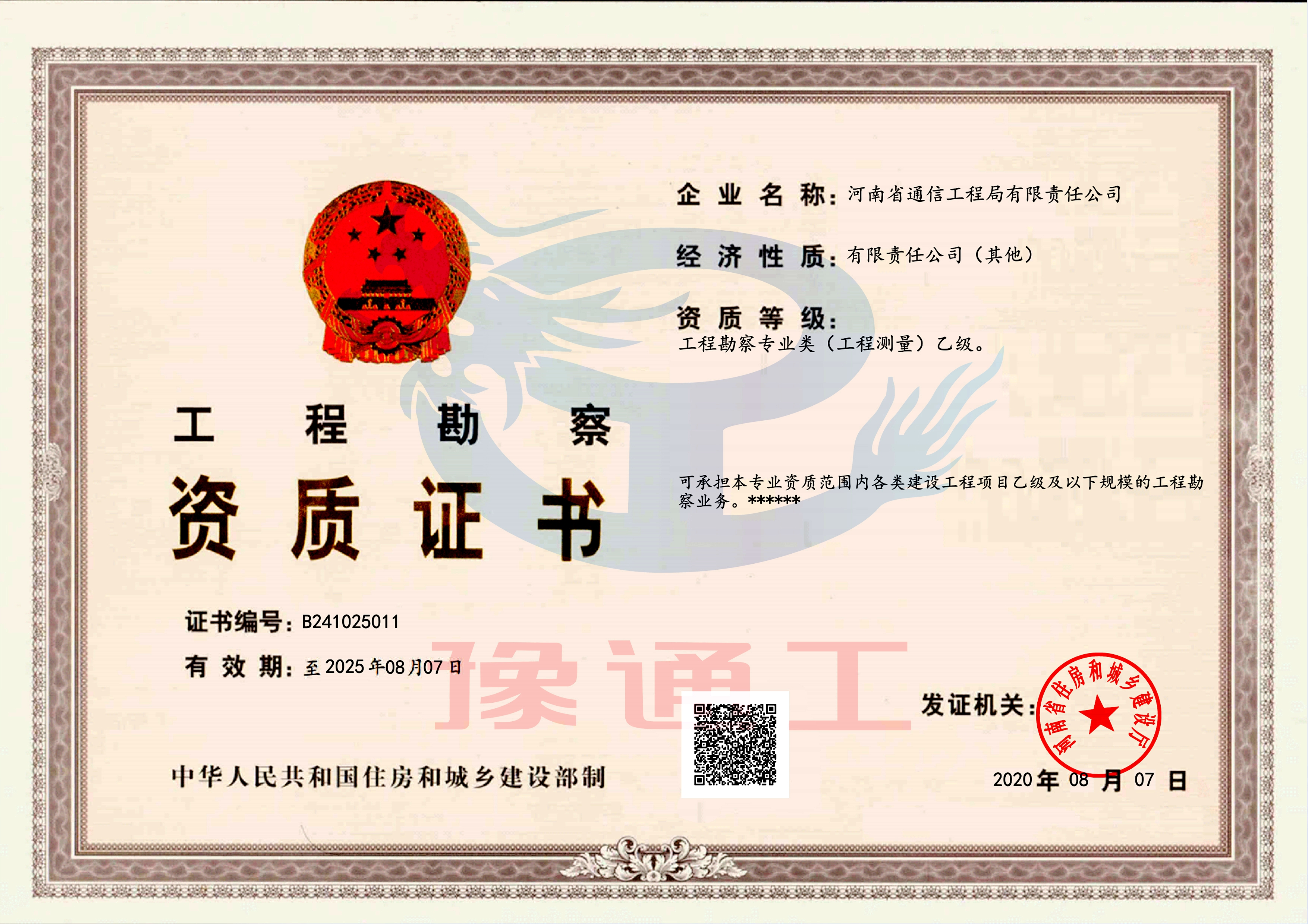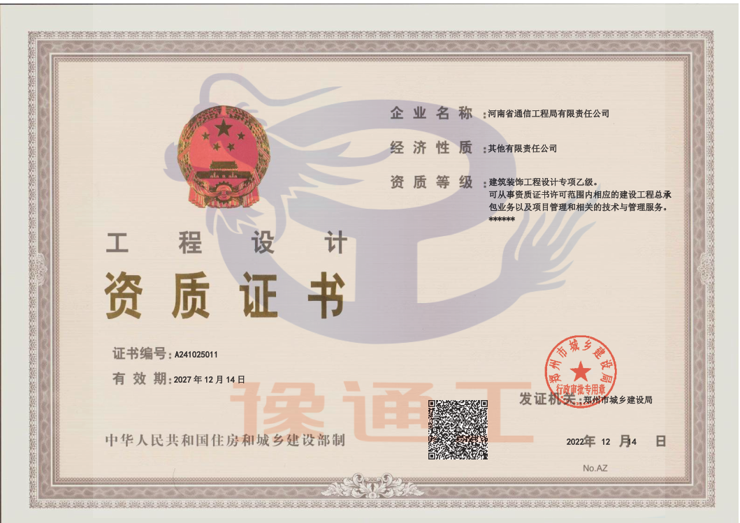 電子與智能化、建筑裝修裝飾、消防設(shè)施工程專業(yè)承包壹級;鋼結(jié)構(gòu)工程專業(yè)承包貳級;建筑工程、電力工程、機電工程、城市及道路照明工程專業(yè)施工總承包叁級;施工勞務(wù)不分等級。