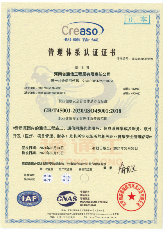 管理體系認(rèn)證證書(職業(yè)健康安全管理)