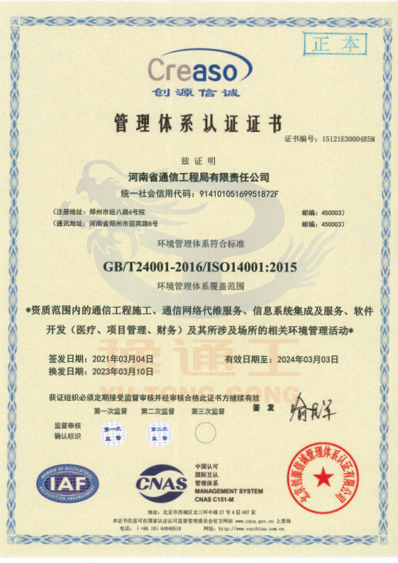 管理體系認(rèn)證證書(環(huán)境管理)