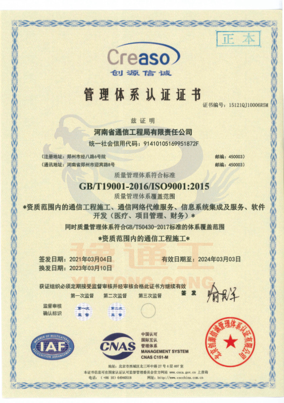 管理體系認(rèn)證證書(質(zhì)量管理)