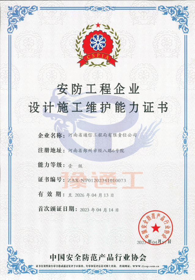 安防工程企業(yè)設(shè)計施工維護能力證書